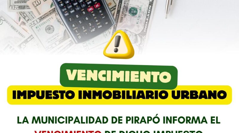 La Municipalidad de Pirapó Informa a la comunidad la fecha de Vencimiento del Impuesto Inmobiliario